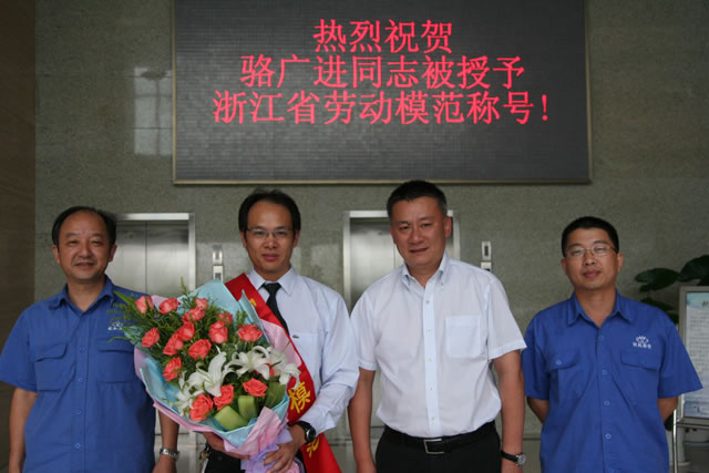 在新中國(guó)成立60周年之際,9月28日,浙江省人民政府在省人民大會(huì)堂隆重舉行“浙江省勞動(dòng)模范表彰大會(huì)”,我公司駱廣進(jìn)同志被授予浙江省勞動(dòng)模范榮譽(yù)稱(chēng)號(hào)。