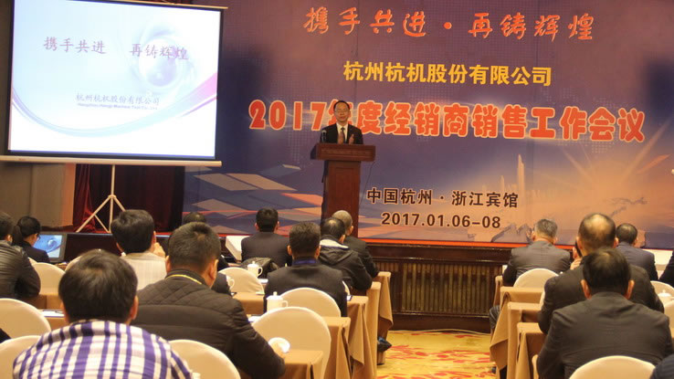 杭機(jī)股份2017年度經(jīng)銷商工作會(huì)議于1月6日-8日在浙江賓館舉行,來(lái)自全國(guó)各地的50多家經(jīng)銷公司代表參加了會(huì)議。