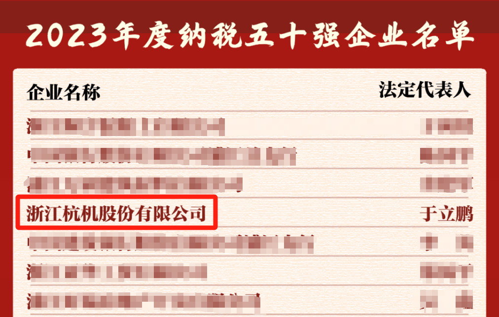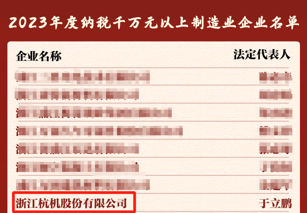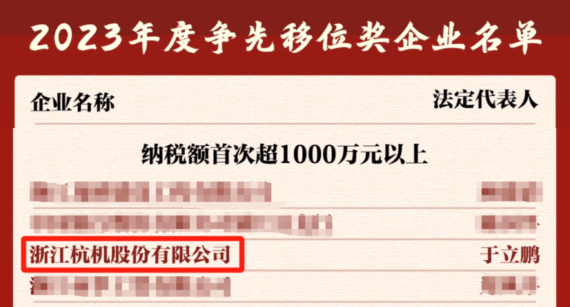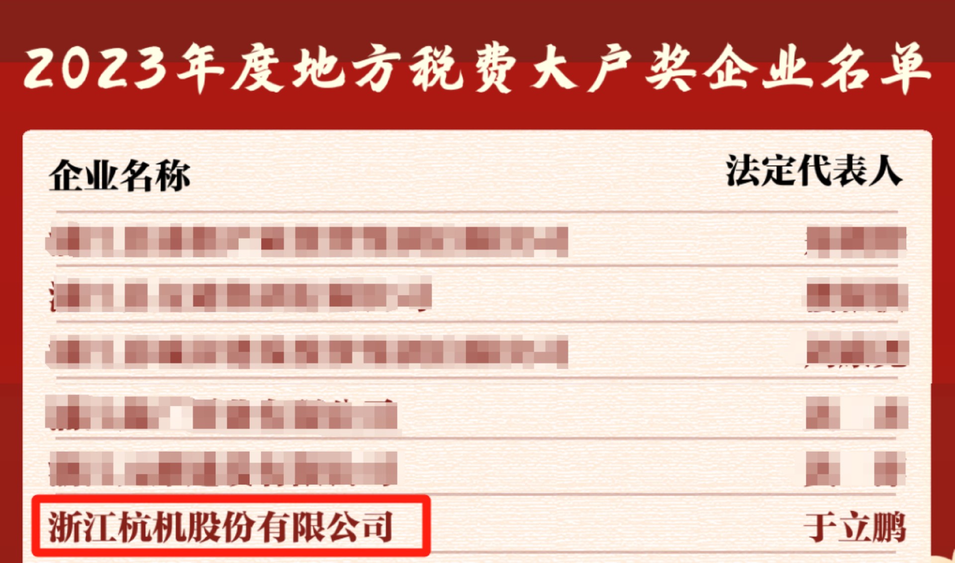 今天下午,浦江發(fā)布2023年度納稅大戶榮譽(yù)榜單,浙江杭機(jī)股份有限公司多次上榜,榮獲多重獎(jiǎng)項(xiàng)。