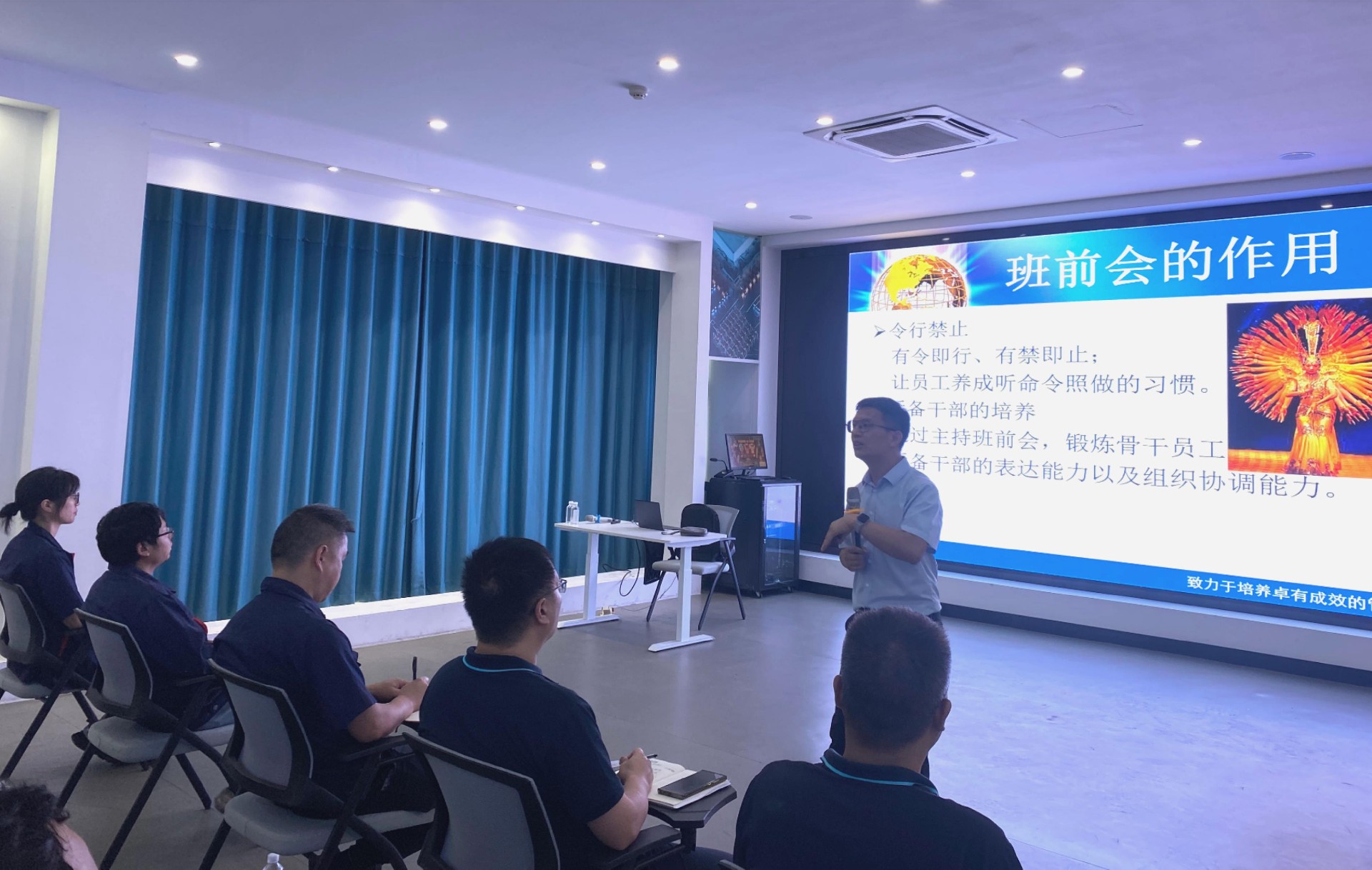 同時(shí),專業(yè)培訓(xùn)老師還對(duì)車間、班組進(jìn)行了班前會(huì)的導(dǎo)入訓(xùn)練,以短時(shí)有效高質(zhì)的形式,幫助團(tuán)隊(duì)快速進(jìn)入工作狀態(tài),提高工作效率和團(tuán)隊(duì)協(xié)作能力。各干部及各車間主管在培訓(xùn)后迅速落實(shí)相應(yīng)工作,通過班前會(huì)總結(jié)前期工作進(jìn)度,部署后續(xù)工作,提出改進(jìn)措施,以此提高職工士氣,傳達(dá)企業(yè)精神,從而強(qiáng)化團(tuán)隊(duì)凝聚力。