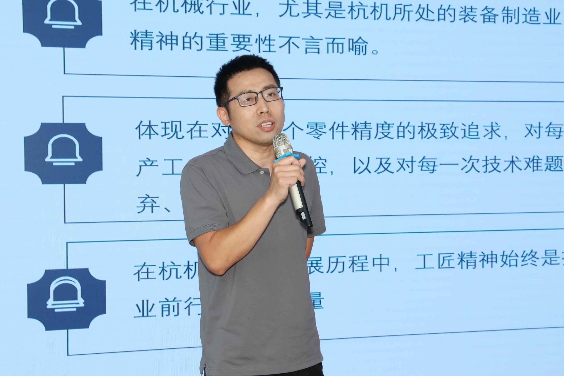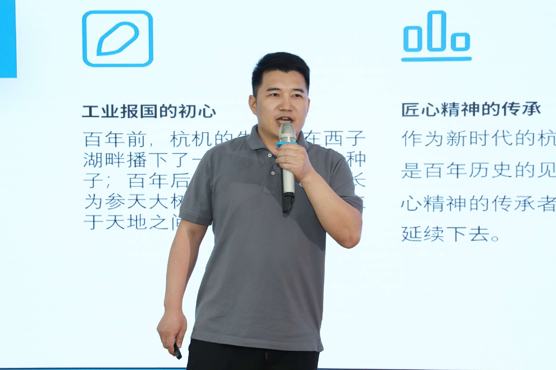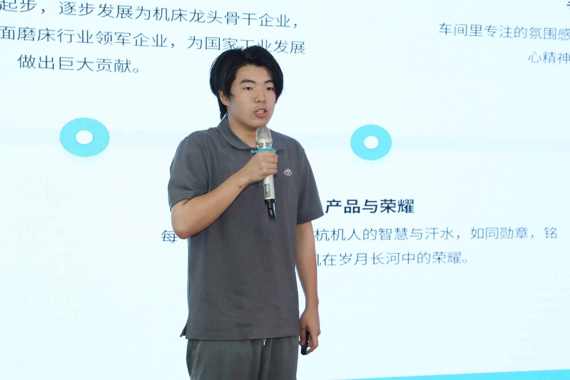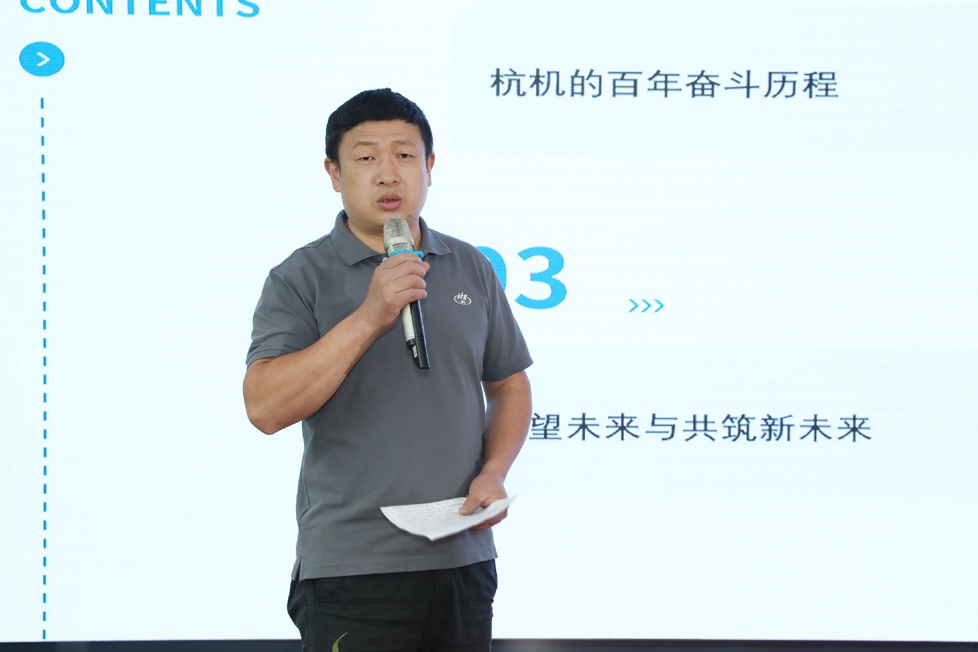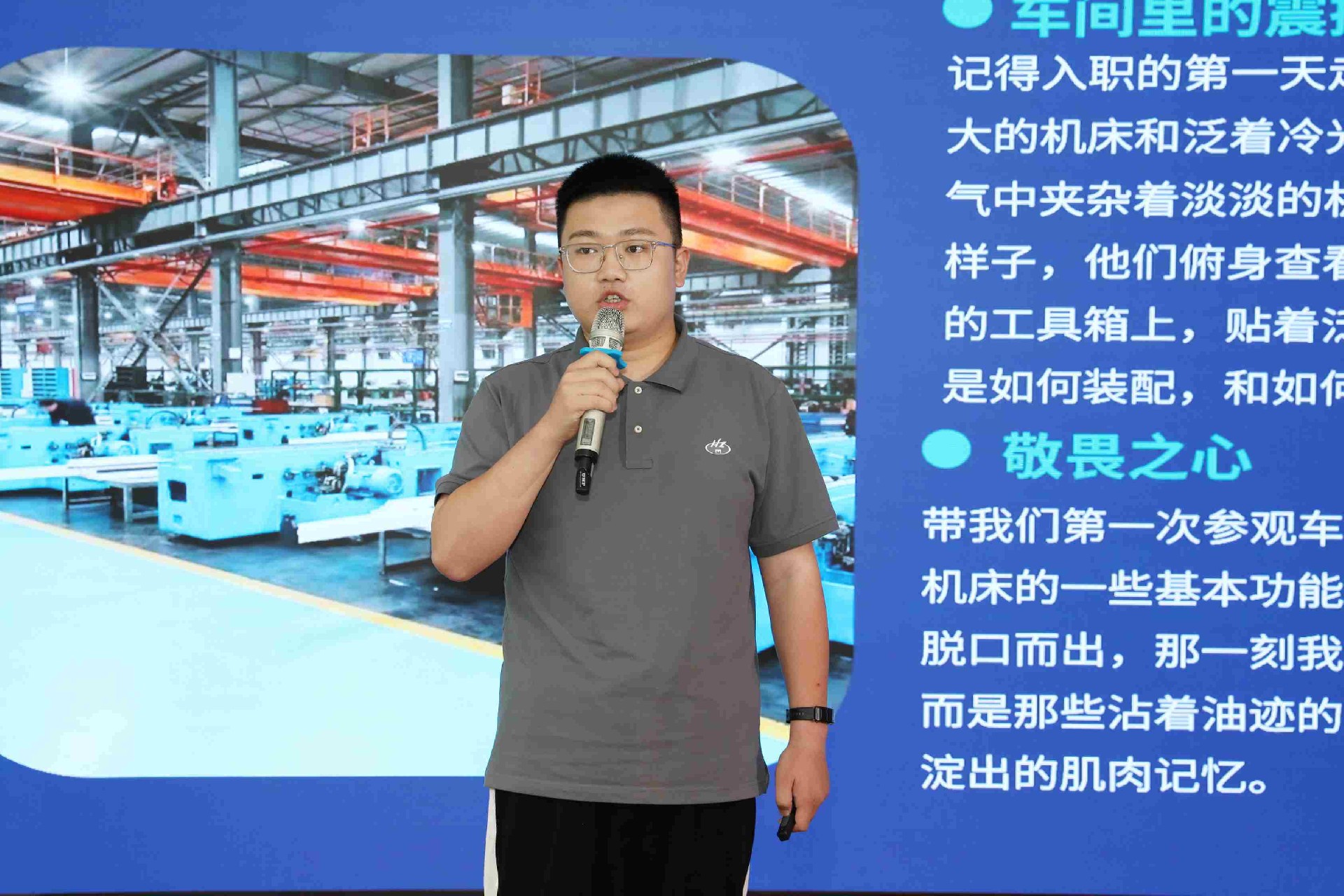 決賽現(xiàn)場,16名來自不同崗位的參賽選手依次登臺。他們中既有扎根車間三十載的老技工,也有青年研發(fā)工程師,更有新入職就感受到滿滿杭機(jī)力量的新員工。演講內(nèi)容緊扣“匠心傳承”“智造突圍”“黨員先鋒”等關(guān)鍵詞,配合多媒體視聽呈現(xiàn),引發(fā)陣陣掌聲。
